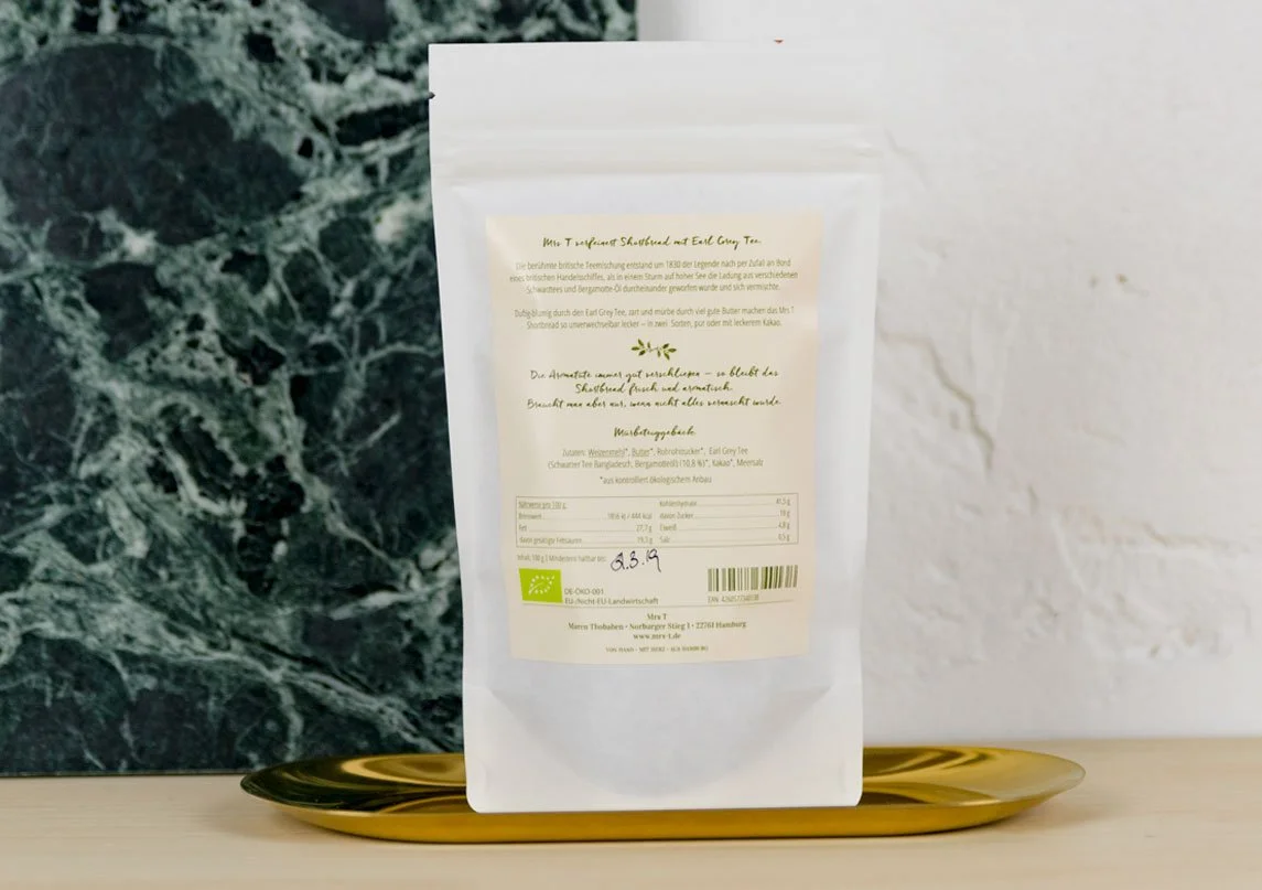 Mrs TCorporate Design für die Hamburger Konditoin Maren Thobaben. Mrs T kreiert Gebäck und Rezepte mit Tee als Zutat. Das Corporate Design umfasst verschiedene Printmedien sowie Verpackungen und wurde 2018 mit dem Bronze A' Design Award prämiert.